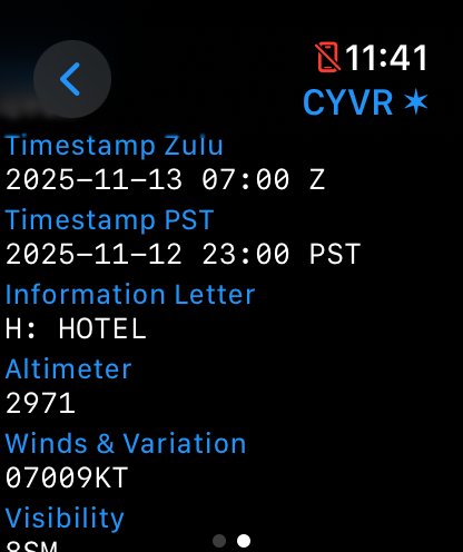 ATIS on your wrist for Canada & USA. Standalone Apple Watch app.